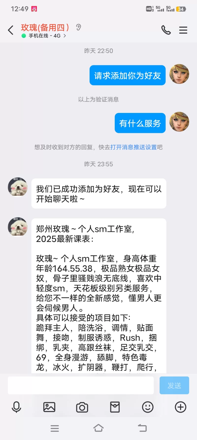 服务项目:跪拜主人,陪洗浴,调情,贴面舞,接吻,制服诱惑,Rush,捆绑,乳夹,高跟丝袜,足交乳交,69,全身漫游,舔脚,特色毒龙,冰火,扩阴器,鞭打,爬行,狗叫,k8 k9,喷潮,圣水淋雨,震动棒自慰,电动jj,打炮机,灌肠,拉珠,滴蜡,剧情策划,角色,乱伦,反叼,倒转八方,深喉,坐脸,坐胸,坐肚,骑大马,轻度耳光,羞辱,打骂,肛交,肛塞,走绳,射颜,吞精,双洞跳蛋,酸奶吃鸡,户外车震,露出,户外吃鸡,打炮等等 近期还新增加了几个新项目,莞式服务,杰士邦情趣遥控跳蛋,情趣秋千,调教椅,电影院,ktv,多人,三妻四妾,双插球,双头蛇,冰淇淋,双插球,双头蛇,穿戴式假jj,舌吻,互舔,互操,口活接力,捉迷藏等等,