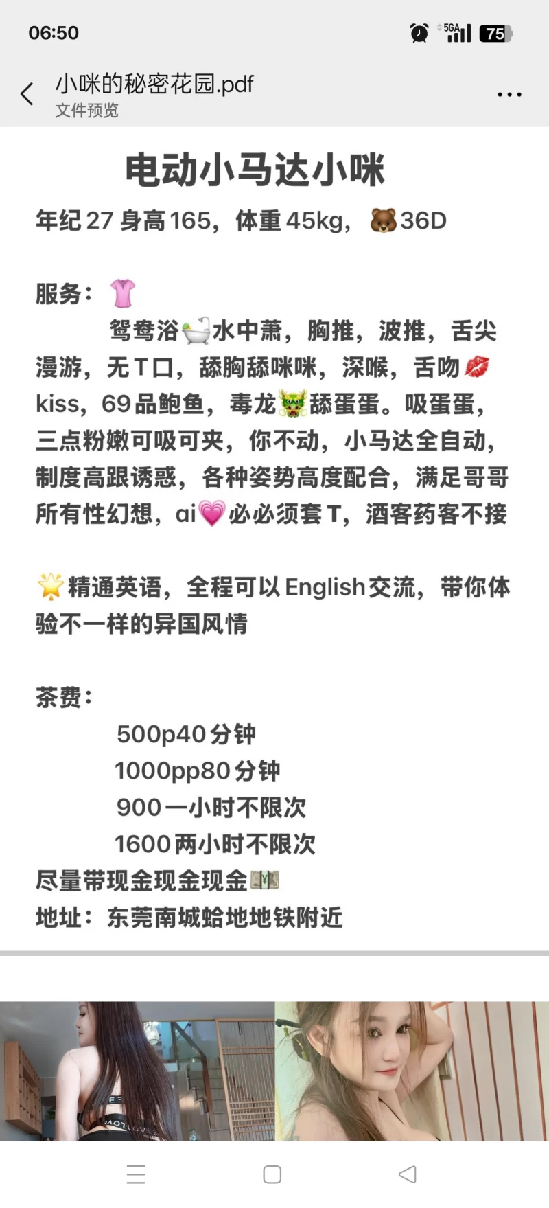 信息分类: 网友投稿-外围小姐地区: 广东-东莞年龄: 25岁-30岁颜值身材: 肥臀巨乳价格: 500p40分钟1000pp80分钟900一小时不限次1600两小时不限次环境设备: 自带公寓服务项目: 鸳鸯浴水中萧,胸推,波推,舌尖漫游,无T口,舔胸舔咪咪,深喉,舌吻kiss,69品鲍鱼,毒龙舔蛋蛋。吸蛋蛋,三点粉嫩可吸可夹,